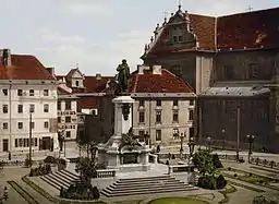 Adam Mickiewicz Monument (Polish: Pomnik Adama Mickiewicza) is a monument dedicated to Adam Mickiewicz at the Krakowskie Przedmieście in the Śródmieście district of Warsaw, Poland. The Neo-Classicist monument was constructed in 1897–1898 by sculptor Cyprian Godebski. It was unveiled on the 100th anniversary of the poet's birth.