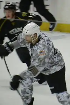 ![]() Polášek playing for the Chicago Wolves during a military appreciation night in 2013 | |||