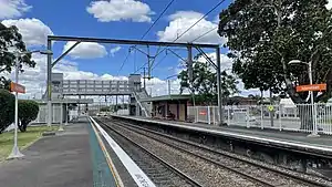 As part of the electrification of the line in the early 1980s, new station buildings were built, the western relief line and Platform 3 removed, and the 1939 built signal box on Platform 1 that used to control movements to the Belmont line decommissioned on 4 December 1983.[3][4] Until December 1991, the Belmont line diverged to the south-east of the station.