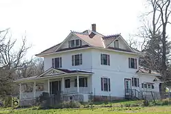 It is a two-story American Foursquare house with Classical Revival detailing, including a wraparound porch supported by Classical columns with an entablature, and a modillioned cornice under the roof. Built in 1897, it is a somewhat flamboyant expression of late Victorian styles for a rural setting.[2]
