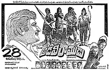 Adavi Ramudu (transl. Forest Ramu) is a 1977 Indian Telugu-language action film produced by Satyanarayana and Suryanarayana under their banner of Satya Chitra. It was directed by K. Raghavendra Rao. The film stars N. T. Rama Rao, Jaya Prada and Jayasudha in lead roles along with Nagabhushanam, Satyanarayana, Gummadi and Jaggayya in other supporting roles.[1]