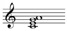 An added tone chord, or added note chord, is a non-tertian chord composed of a triad and an extra "added" note. Any tone that is not a seventh factor is commonly categorized as an added tone. It can be outside the tertian sequence of ascending thirds from the root, such as the added sixth or fourth, or it can be in a chord that doesn't consist of a continuous stack of thirds, such as the added thirteenth (six thirds from the root, but the chord doesn't have the previous tertian notes – the seventh, ninth or eleventh). The concept of added tones is convenient in that all notes may be related to familiar chords.[3]