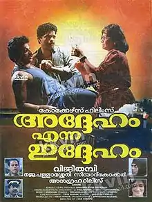 Addeham Enna Iddeham is a 1993 Malayalam-language comedy-drama film directed by Viji Thampi, starring Jagadish, Siddique, Maathu, and Raghuvaran in major roles.[1][2]