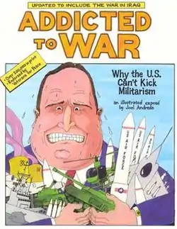 Addicted to War: Why The US Can't Kick Militarism, is a 77 letter-sized page "illustrated exposé" by Joel Andreas published by Frank Dorrel with AK Press in 2002 (ISBN 1-904859-02-X). Originally published in 1991, the book was out of print until Dorrel convinced Andreas to create an updated, post-9/11 version.