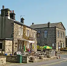 Planning permission for a motel to be built on an overgrown plot of land near the cricket ground on Main Street was first granted in 1991 and renewed in 1996.[45] In 2001, an application to redevelop the land into nine houses was rejected due to the site being part of a Green Belt site, leading to renewed efforts on a 32-bedroom "budget" motel.[46] In 2005, revised plans for an 'American-style' 30-bedroom motel with less car parking space and a residents only bar were approved, with the Parish Council objecting on the grounds that the new design would be out of character for the village.[47] In 2007, after no visible work had been done, the Parish Council were awarded a £4,000 grant and were able to clean it up and erect a new fence. By 2008, it had once again become overgrown, leading to Parish Councillors urging the Bradford Council to release the site from the Green Belt.[48] In 2010, another bid was made to renew planning permission for a 30-bedroom motel, with three written objections being made to Bradford Council.[49] Since then, no development has commenced on this plot of land and the issue is still to be resolved.