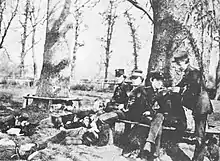Examinations were held twice-yearly in June and December: they lasted about three weeks, and culminated in a Public Examination, a day-long affair of some ceremony before a distinguished invited audience, which included orchestrated demonstrations of book-learning and of military exercises such as swordsmanship and pontoon-building; an exhibition of drawings and models; a formal inspection; and the distribution of prizes.[21] The day's events are described in one account as "a performance carefully prepared and rehearsed beforehand. Its object was to make a favourable impression on a carefully selected audience".[22] The Public Examiner, who presided, was an eminent general (see list below); while the audience usually included some of the Directors of the East India Company, and often the Archbishop of Canterbury, who had a residence nearby at Addington Palace.