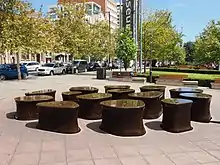 The following decade, Mike Rann, Premier and Arts Minister from 2002 to 2011, funded the redevelopment of the Pacific Cultures Gallery and the development of the South Australian Biodiversity Gallery.[17] In October 2005, a piece of public art incorporating water, 14 Pieces, situated on the forecourt of the museum, was officially unveiled by the Premier. Created by artists Angela and Hossein Valamanesh and commissioned by the City of Adelaide, it replaced the Lavington Bonython fountain that had occupied the site from 1965. Its form is based on the vertebrae of an extinct marine reptile, the ichthyosaur.[18]