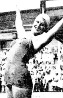 ![]() Adele Price, limbering up before diving, January 1954 | |||||