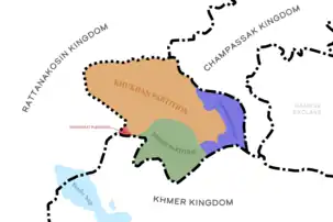 | Khukhan | ขุขันธ์ | partitioned between Siam and France, merged into Sisaket | Ubon Ratchathani and Sisaket |