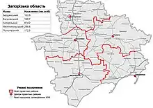 - Zaporizhzhia (Запорізький район), the center is in the city of Zaporizhzhia.