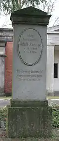 Zander lived in Berlin around 1880 at 26 Höchste Straße, later at 16 Krautstraße, finally about 1895 on Graefestraß'.[1] He died in Kleinaupa, Riesengebirge, aged 71, and was buried on the old Friedhof II der Sophiengemeinde Berlin cemetery in Berlin-Mitte.