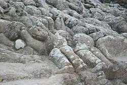 At that point, he devoted his life to art. He began to decorate his house, which he called Haute Folie ("High Madness"), with wooden sculptures. He created a garden decorated with over 200 painted figures. For 13 to 14 years,[1] he carved rocks by the sea, using a chisel and a hammer, first at Pointe du Christ, and later at Pointe du la Haie. The sculpted rocks depicted the Breton saints Budoc and Gobrien de Vannes. The latter ended his life as a hermit and was therefore chosen by Father Fouré as his patron saint. He depicted historical figures such as Napoleon, Cleopatra, and the Queen of Sheba, alongside events of his own time, like the Boer War. His sculptures were originally colored, but were later bleached by wind and sun.[4] His rock sculptures are slowly disappearing due to erosion.[1]