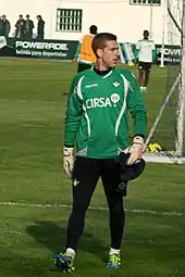 Adrián spent his first two seasons with the C-team and a further five with the reserves, with all five seasons with the reserves coming in the Segunda División B, successively backing up René and Brimah Razak.[8] He was also loaned to Alcalá in 2008 and Utrera in 2009.[9][10] He was promoted to the first team for 2011–12 as third-choice – still continuing to appear for the B's – but suffered a severe injury to his cruciate ligaments in November that kept him out of action for five-and-a-half months.[11][12]
