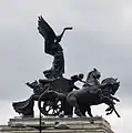 Peace descending on the Quadriga of War | Wellington Arch, Hyde Park Corner, London | 1912 | Sculpture group | Bronze | Grade I | Cast by A.B. Burton at the Thames Ditton Foundry.[10][19][24] |