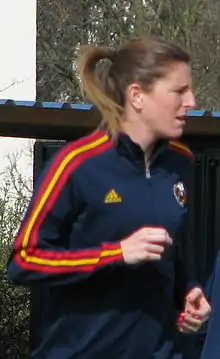 Adriana Martín Santamaría (born 7 November 1986), commonly known as Adriana, is a Spanish international footballer who plays as a forward for Lazio.[2][3] She previously played for Chelsea Ladies in England and Western New York Flash and Sky Blue FC in the United States,[4] as well as Atlético Madrid, FC Barcelona, CE Sabadell, RCD Espanyol, Rayo Vallecano, Levante UD and Málaga CF in Spain. She has won three Spanish leagues and two national cups, and was the league's top scorer in 2007, 2010, and 2015.[5][6]