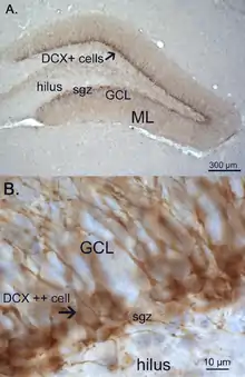 - Bayer, S. A. (1982). "Changes in the total number of dentate granule cells in juvenile and adult rats: a correlated volumetric and 3H-thymidine autoradiographic study". Experimental Brain Research. Experimentelle Hirnforschung. Experimentation Cerebrale. 46 (3): 315–323. doi:10.1007/bf00238626. PMID 7095040. S2CID 18663323.