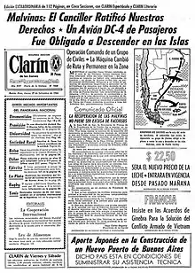 The group had initially planned to purchase all the seats on board the flight, but this option was too expensive for their limited budget.[5] So instead they chose to join the same flight as Rear Admiral Jose Maria Guzman (unaware of the plan) who was the then governor of the National Territory of Tierra del Fuego Province, under whose jurisdiction the Falklands fall according to Argentina's sovereignty claim to the Islands.[5] Héctor Ricardo García, owner of the Buenos Aires newspaper Crónica, was also a passenger having been invited to witness the operation by the militants.[6] He claimed he did not know the details of the plan but in fact he was a key promoter.[4] Two years earlier, his paper had offered to support Miguel Lawler Fitzgerald's flight to the Falklands.[4]