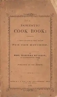 Malinda Russel has been coined as an influential member of Affrilachia because of the cookbook The Domestic Cookbook: Containing a Careful Selection of Useful Receipts for the Kitchen that she published and her "Washington Cake" that gained fame from its combination of citrus and spiced flavors.[24]