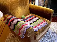 An afghan is a blanket or shawl, usually knitted or crocheted.[1] It is sometimes also called a "throw" of indeterminate size. Afghans are often used as bedspreads, or as a decoration on the back of couches or chairs.[2]