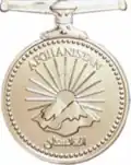 The Afghanistan Medal was instituted by Queen Elizabeth II, Queen of Australia on the advice of the Australian Prime Minister John Howard in 2004.[1] It is awarded to Australian defence force personnel who served in or around Afghanistan after 11 October 2001. Defence force personnel are also recognised by the 'ICAT' clasp to the Australian Active Service Medal and the North Atlantic Treaty Organisation's Non-Article 5 Medal with 'ISAF' clasp.