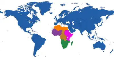 | Central Africa | 54 | 3 | 1 | 11 | 1 | 0 | 8 |