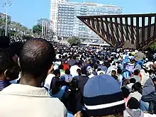 African immigration to Israel is the international movement to Israel from Africa of people that are not natives or do not possess Israeli citizenship in order to settle or reside there.[1][2][3] This phenomenon began in the second half of the 2000s, when a large number of people from Africa entered Israel, mainly through the then-lightly fenced border between Israel and Egypt in the Sinai Peninsula. According to the data of the Israeli Interior Ministry, 26,635 people arrived illegally in this way by July 2010,[4] and over 55,000 by January 2012.[5] In an attempt to curb the influx, Israel constructed the Egypt–Israel barrier.[6] Since its completion in December 2013, the barrier has almost completely stopped the immigration of Africans into Israel across the Sinai border.[7][8]