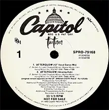 "Afterglow" is a song recorded by Tina Turner, written and produced by Terry Britten and Graham Lyle, and produced by Britten. It appeared on her studio album Break Every Rule (1986), and featured Steve Winwood on keyboards. The song was the eighth and final song from the album to be released as a single, if only in the United States. It failed to crack the US Hot 100, but it reached number 5 on the US dance charts and number 20 on the Maxi Single Sales chart. A promo video for the track was filmed as part of the Break Every Rule TV special in 1986, in which it was the opening number. It shows Turner performing the song in her dressing room at the club Le Zero in Paris as she is preparing to go on stage.