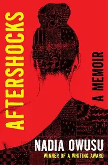 Aftershocks: A Memoir is a 2020 memoir book by Nadia Owusu, published by Simon & Schuster,[1] which won the 2019 nonfiction Whiting Award.[2] The book is a memoir covering personal, political and historical levels related to the author's origins and itinerant upbringing in several African and European countries accompanied by her caring although globetrotting father from Ghana. Despite their intense nomadism, her father nurtured her affective and cultural bonding to their Asante ethnic roots in Central Africa, where they traveled every year to visit relatives and friends. The memoir spans her early childhood to her late twenties. Having been abandoned by her Armenian mother when she was 2 years old, Nadia orphaned from her father when she was 13, following which she battles over the years to summon a historically contextualized, confident self as a young adult to gain socially minded, high level education and employment in the United States.