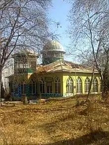 Aga Sahib Shrine or Ziyarat e Sarkaar or Aga Mehdi Shrine is a religious place of Kashmiri Muslims located at Budgam. In this shrine there are many religious personalities buried include Ayatullah-ul- Uzma Aga Syed Mehdi Al-Mosvi Al-Safvi Al-Najafi, Aga Syed Ahmad Al-Mosvi Al-Safvi Al-Najafi, Aga Syed Yusuf Al-Moosavi Al-Safavi, Aga Syed Mohammad Fazlullah, Aga Syed Mehdi Mustafa, Aga Syed Mustafa Al-Moosavi and others. [1][2][3] This shrine is situated on the karewas of Budgam which is about 100 feet (30 m) high.[4] The shrine was constructed by Aga Syed Yousuf himself during his lifetime to honor Sarkar Aga Syed Mehdi Al-Moosavi, who was also Aga Syed Yousuf's grandfather.[3][5]