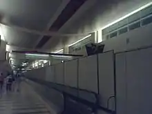 The original design is said to be compliant with security standards at the time of opening. However, after the September 11, 2001 attacks, the U.S. government began to require separation of uninspected arrival passengers. The airport initially used a system of chairs, moving sidewalks, retractable belts and security/police staffing to usher arriving passengers from the gate to the immigration hall without coming into physical contact with departing passengers. In recent years, semi-permanent movable walls separate much of the length of the terminal building into two halves, decreasing the need for human staffing and those lighter objects previously in use.[24]
