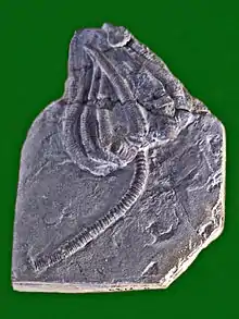 | Fossil specimen of Agaricocrinus splendens from United States, on display at Galerie de paléontologie et d'anatomie comparée in Paris | |