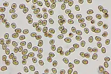 Spore prints are dark chocolate brown. The smooth, thick-walled spores are elliptical, and typically measure 5–6.5 by 3.5-4 μm. Cystidia on the gill edge (cheilocystidia) are scattered, club-shaped to cylindric and have dimensions of up to 22 by 7 μm.