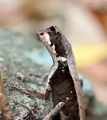 Agasthyagama beddomii, commonly known as the Indian kangaroo lizard, is a diurnal, terrestrial, insectivorous agamid lizard, endemic to the Western Ghats of South India.