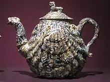 Agateware is pottery decorated with a combination of contrasting colored clays.