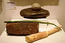 The leaves yield fibers, known as pita, which are suitable for making rope, nets, bags, sacks, matting, or coarse cloth. They are also used for embroidery of leather in a technique known as piteado.[23] Both pulque and maguey fiber were important to the economy of pre-Columbian Mexico.[19]