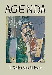 Agenda was started in 1959, after Cookson had met Ezra Pound in Italy the previous year.[1] Pound had originally suggested that Cookson edit pages in an existing publication, but when these plans did not come to fruition, the bookseller and poet Peter Russell suggested that Cookson found his own magazine. Agenda was edited with Peter Dale and then Patricia McCarthy, who continues to edit the journal following Cookson's death in 2003.