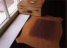 Atmospheric pollutants can tarnish or corrode metal objects. Silver objects are vulnerable to sulphurous gasses which cause them to tarnish, and lead and pewter objects will corrode when exposed to volatile organic acids.[23] Damage can be minimised by storing vulnerable silver objects in enclosures with activated charcoal or in silvercloth, which adsorb sulphur.[24] Silver objects can also be coated, or lacquered, with a clear barrier material such as Paraloid B-72 to prevent tarnishing, but these coatings require periodic reapplication. One potential source of volatile organic acids is wooden shelves or wooden storage and display furniture.[25]