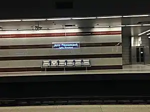 Agia Paraskevi (Greek: Αγία Παρασκευή), also known as Aghia Paraskevi on signage, is a station on Athens Metro Line 3. It opened on 30 December 2010,[2] although its construction necessitated disruption of metro services east of Ethniki Amyna.[3]