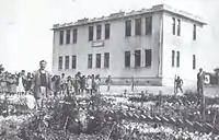 The modern town was founded by refugees from 25 villages of Eastern Thrace and 7 villages of Asia Minor, the region of Smyrna. The refugees moved in Agios Athanasios from October 1922 till 1924. The first refugees settled in the manoir (chiflik) Kavakli in October 1922. The first 25 families came from Kermeni in Eastern Thrace. Apart from the manoir Kavakli, there were also the manoirs Paliocopi, Tsalkato, Kouloupantza and Tsalikovo in the area. Around 1850, the tenant farmers built the small church of Saint George, which is the oldest building of the town. The first refugees were settled in the few poorly built houses, in the storing places and the stables of the chiflik Kavakli. Till the autumn of 1924 about 600 families, that is about 2,800 inhabitants, settled in. The first name of the town was Perintos, after the ancient town in the Eastern Thrace. In 1928 the town was given the name of Agios Athanasios. The people were farmers and stock breeders and they never forgot the customs of their homeland. Today, Agios Athanasios is a modern, nicely developed town with three nursery schools, two primary schools, a junior high school, a high school and a vocational high school.