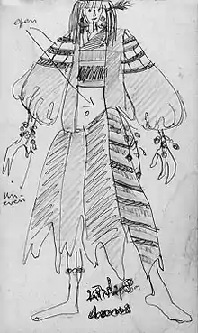 Mihipaba, the wife of Soma pleads him not to go to the mountains in search of fire. He eventually soothes her in one of the charming numbers in the score. Soma sings: You are the rose given to me by the goddess of earth. Vowing to be faithful to her, he changes his mind to prolong his stay at home till the last moment. At this very moment, he hears his own aria sung in Act Three, Scene 1, echoes in the air. It inspires him to do his duty towards his people. When his aria is thus repeated, he transforms into a majestic martyr who is ready to risk his life for the well-being of the people.