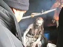 The Aghori (from Sanskrit अघोर aghora; lit. 'not-fearful', 'fearless') are a monastic order of ascetic Shaivite sadhus based in Uttar Pradesh, India. They are the only surviving sect derived from the Kāpālika tradition, a Tantric, non-Puranic form of Shaivism which originated in Medieval India between the 7th and 8th century CE.[1][2][3][4] Similarly to their predecessors, Aghoris usually engage in post-mortem rituals, often dwell in charnel grounds, smear cremation ashes on their bodies,[5] and use bones from human corpses for crafting kapāla (skull cups which Shiva and other Hindu deities are often iconically depicted holding or using) and jewellery.[1][2][3]