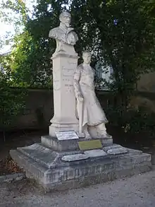 Perdiguier returned to France in December 1855, and opened a small bookshop in Paris.[4] In 1863 he undertook a third tour of France, visiting Avignon and Morières.[2] The last years of his life were difficult, and spent in obscurity. Perdiguier remained a Republican and a deist.[4] During the defense of Paris in 1871 he was appointed deputy mayor of the 12th arrondissement.[2] He was hostile to the Paris Commune.[4] He died of a stroke in Paris on 26 March 1875, in a state of destitution. He is buried in the Père-Lachaise Cemetery.[2]