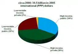 In 2000, the world spent 39.5 billion dollars (in 2005 PPP prices, that is in inflation-adjusted terms) on agricultural R&D. The private sector was estimated to account for 41 percent of this total, the vast majority of which was performed in industrialized countries (96 percent). In contrast, only 6 percent of total investments in the developing world were derived from private firms.