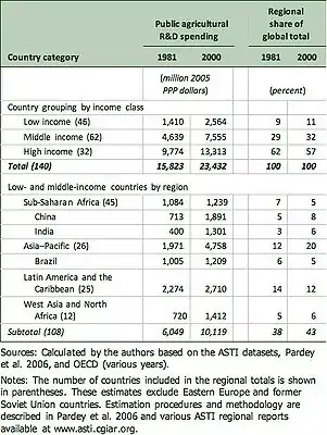 Beintema, N.M. and Stads, G.J. 2008. Measuring Agricultural Research Investments: A Revised Global Picture. ASTI Background Note. Washington, D.C.: IFPRI. (PDF-File, 657K - Accessed on March 18, 2010)