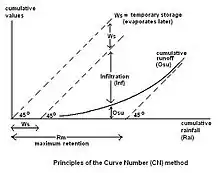 Example of a surface water balance An example is given of surface runoff according to the Curve number method.[3] The applicable equation is: - Osu = (Rai – Ws)2 / (Pp – Ws + Rm)