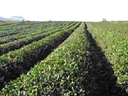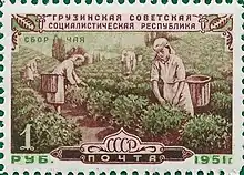 In the Soviet period, swampy areas in the west were drained and arid regions in the east were salvaged by a complex irrigation system, allowing Georgian agriculture to expand production tenfold between 1918 and 1980.[1] However, production was hindered in the Soviet period by the misallocation of agricultural land such as the assignment of prime grain fields to tea cultivation and excessive specialization.[1] Georgia’s emphasis on labor-intensive crops such as tea and grapes kept the rural work force at an unsatisfactory level of productivity.[1]