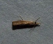 Agriphila vulgivagellus, the vagabond crambus or vagabond sod webworm, is a moth of the family Crambidae. It is found from Quebec and New England to Florida, west to Texas and north to Alberta.[2]