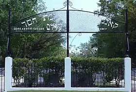 The late 19th century saw an influx of Russian and Eastern European Orthodox Jews (now Conservative) to Mobile, joining the well-established Reform Jewish community, started by German Jewish immigrants to the city. The newcomers began meeting in the home of Jacob Levinson in 1894 and called themselves Ahavas Chesed, or "Love of Kindness."[3] They purchased a site for burials on September 29, 1898, adjacent to the Sha'arai Shomayim Cemetery of the Reform congregation, where their dead could be buried with stricter adherence to ancient Jewish custom than is practiced by other congregations.[2]