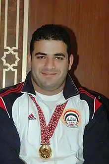 Ahed Joughili (Arabic: عهد جغيلي; born October 10, 1984) is a Syrian weightlifter, who competed in the 105 kg division at the 2008 Summer Olympics and 2012 Summer Olympics.[1] Joughili won a silver medal at the 2005 Mediterranean Games and a gold medal at the 2006 Asian Games. Joughili claimed both gold medals for the 105 kg snatch and clean&jerk at the 2009 Mediterranean Games.[2][3]