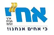 Ahi (Hebrew: אח"י, lit., My Brother, an acronym for Eretz Hevra Yahadut (ארץ חברה יהדות), lit., Land, Society, Judaism) is a right-wing religious Zionist political party in Israel. Founded in 2005, it was part of the National Union alliance between 2006 and 2008. For the 2009 elections, it ran a joint list with Likud.[1]